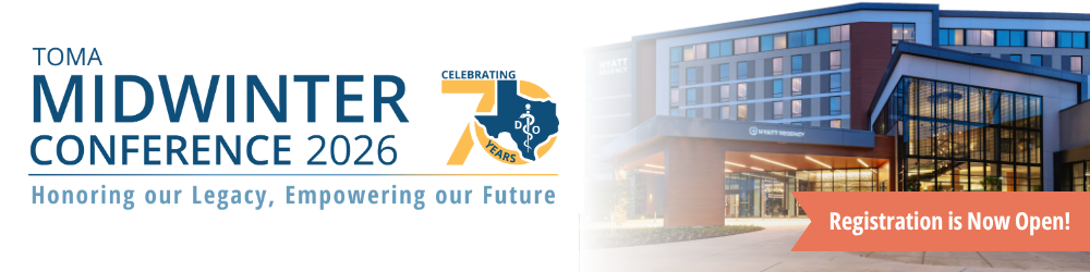 TOMA's 70th Annual MidWinter ConferenceCelebrate the 70th Anniversary of the TOMA MidWinter Conference from February 27–March 1, 2026, at the Hyatt Regency in Conroe, Texas, located near the Sam Houston State University College of Osteopathic Medicine (SHSU-COM). This special in-person event will feature 17 hours of outstanding CME sessions, our first-ever student track, exciting networking opportunities and celebrations honoring TOMA’s rich history and bright future. Register Now